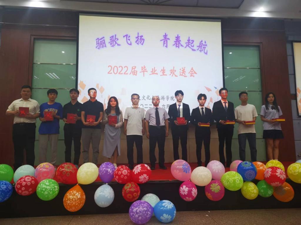2022届毕业生欢送会在一段记录了毕业生大学四年美好时光的视频中拉开了帷幕,毕业班员工代表为毕业班班主任送上鲜花,毕业班班主任为即将毕业的同学们送上祝福。整场欢送会同学们用深情的朗诵、美妙的歌声和欢快的舞步表达了临别之际对母校的感恩和不舍之情,现场气氛热烈而又温馨。