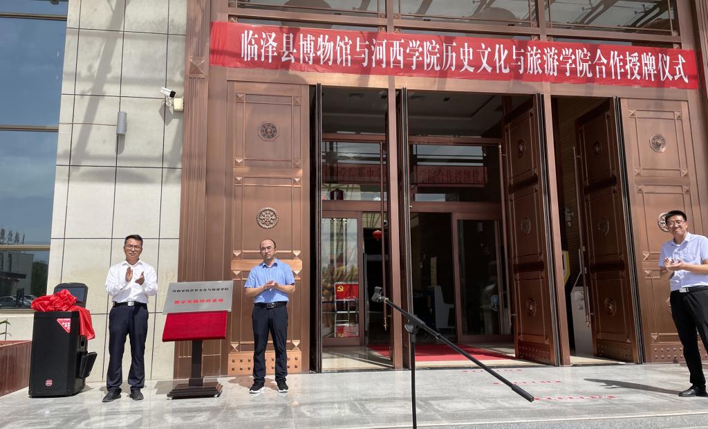 牛伟全与贾小军共同为教学实践研修基地揭牌。临泽县博物馆南振亚馆长介绍了临泽县博物馆的具体情况。贾小军从专业发展、团队建设、人才培养等方面介绍了w88win相关情况,并指出此次校地合作既是保护历史文化遗产、传承弘扬优秀历史文化,更是w88win中文手机版结合张掖市临泽县文化旅游产业发展实际、积极践行省第十四次党代会“强县域”决策、服务地方经济发展战略的重要举措。双方希望通过此次合作,在做好历史文化资源研究和文化旅游开发的同时,不断优化资源配置,实现产教融合、资源共享,为保护传承历史文脉,促进地方文旅产业做出更大贡献。